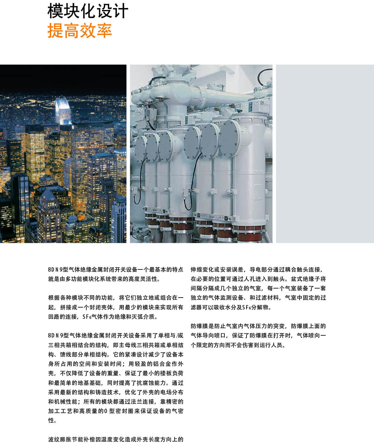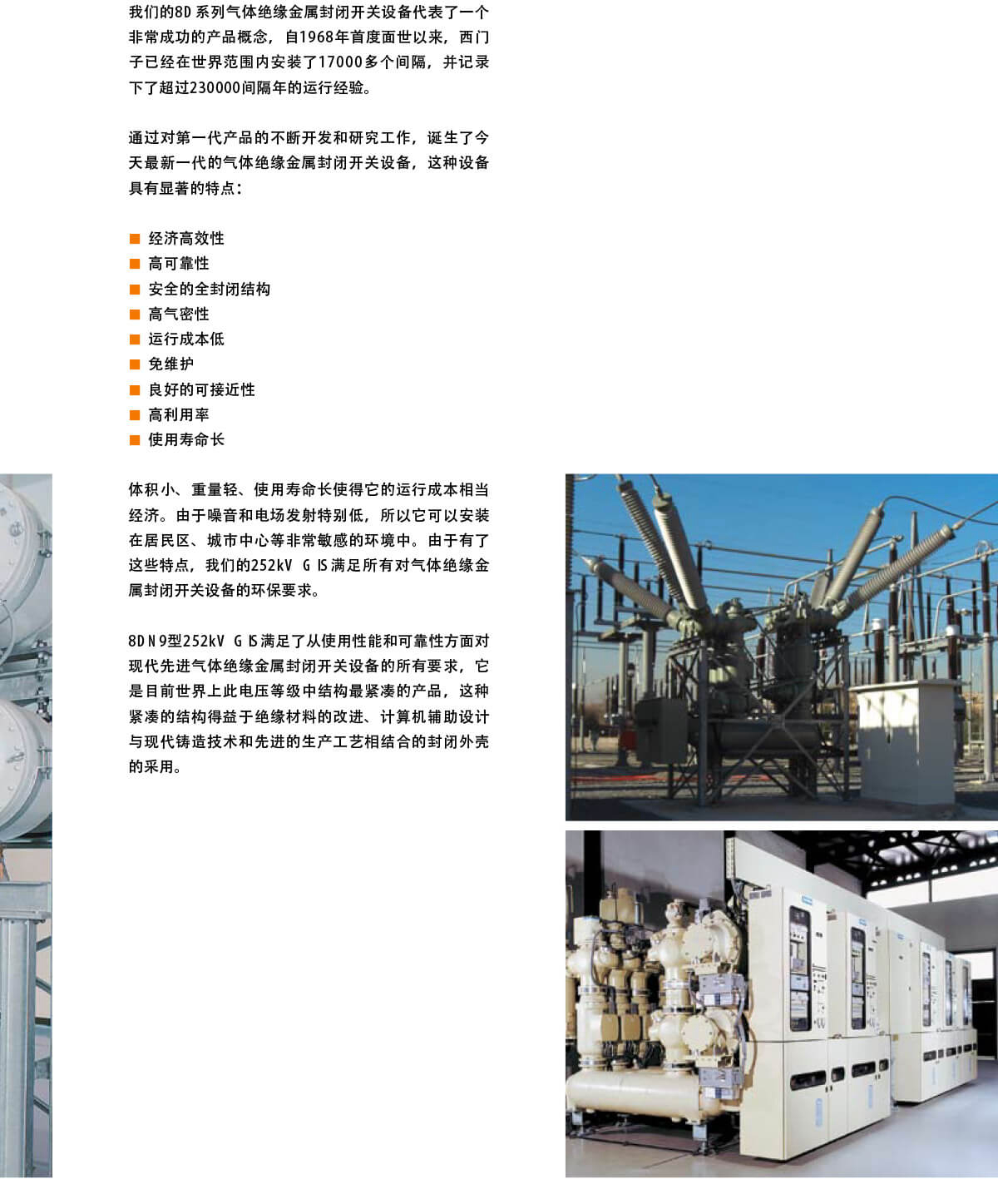 8D N 9型252kV G IS满足了从使用性能和可靠性方面对现代先进气体绝缘金属封闭开关设备的所有要求,它是目前世界上此电压等级中结构最紧凑的产品,这种紧凑的结构得益于绝缘材料的改进、计算机辅助设计与现代铸造技术和先进的生产工艺相结合的封闭外壳的采用。